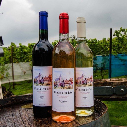 Neem een rondleiding door de wijngaard bij Chateau du Tets. In de verte schittert het uitzicht over de polder en een aanzienlijk aantal druivenstokken. Achter de plaatselijke timmerfabriek kwam in 1992 plek vrij voor een kas en zes rijen van in totaal tweehonderd planten. In de loop der jaren heeft de eigenaar zestig druivenrassen uitgeprobeerd. De wijngaard is inmiddels vijf maal zo groot en bijzonder mooi om in rond te lopen.